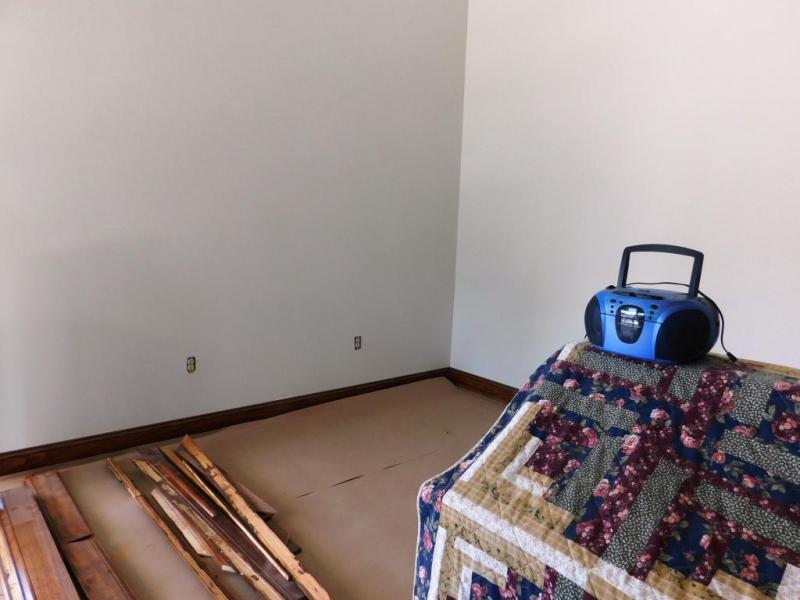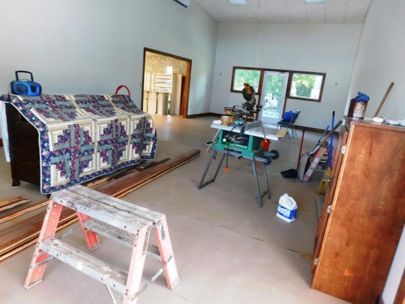 At left, the large room is still under construction. The entrance to the library can be seen at left.