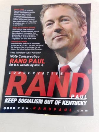 The Democratic candidate arrived in Paducah on the same day our mailbox belched out an oversized postcard from his opponent's campaign.